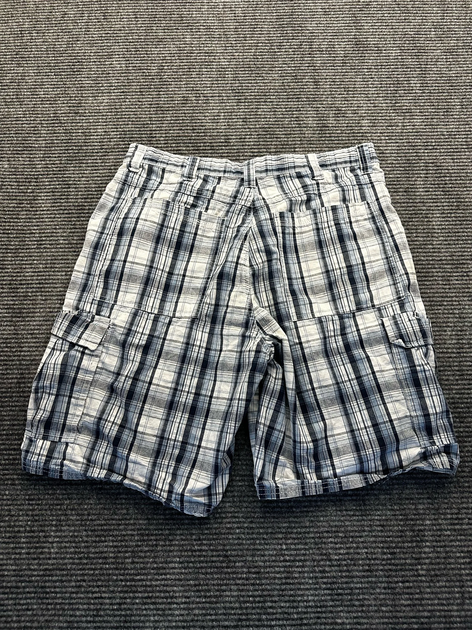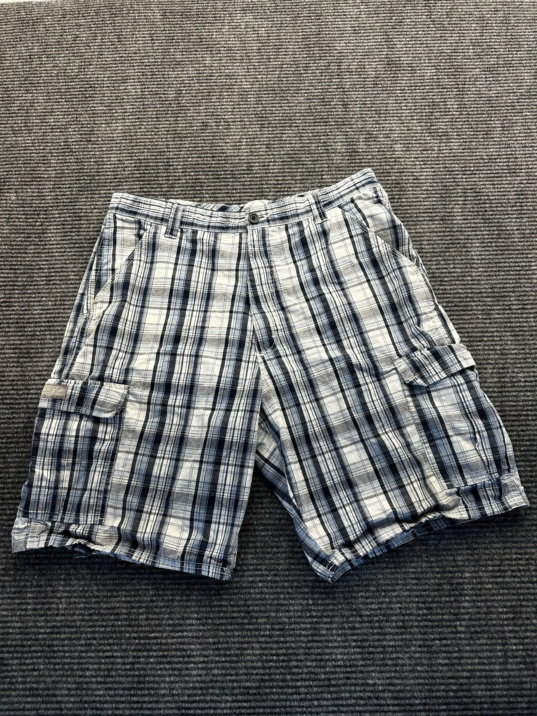 The Men's Blue Plaid Wrangler Cargo Knee Length Streetwear Casual Shorts in size 34 are a stylish and functional addition to any man's wardrobe. These shorts feature a classic blue plaid pattern with cargo pockets for added convenience. The knee-length design makes them versatile for both casual outings and everyday wear, while the Wrangler brand ensures quality and durability. Perfect for a laid-back yet fashionable streetwear look, these shorts are a must-have for any man looking to upgrade his casual wardrobe.