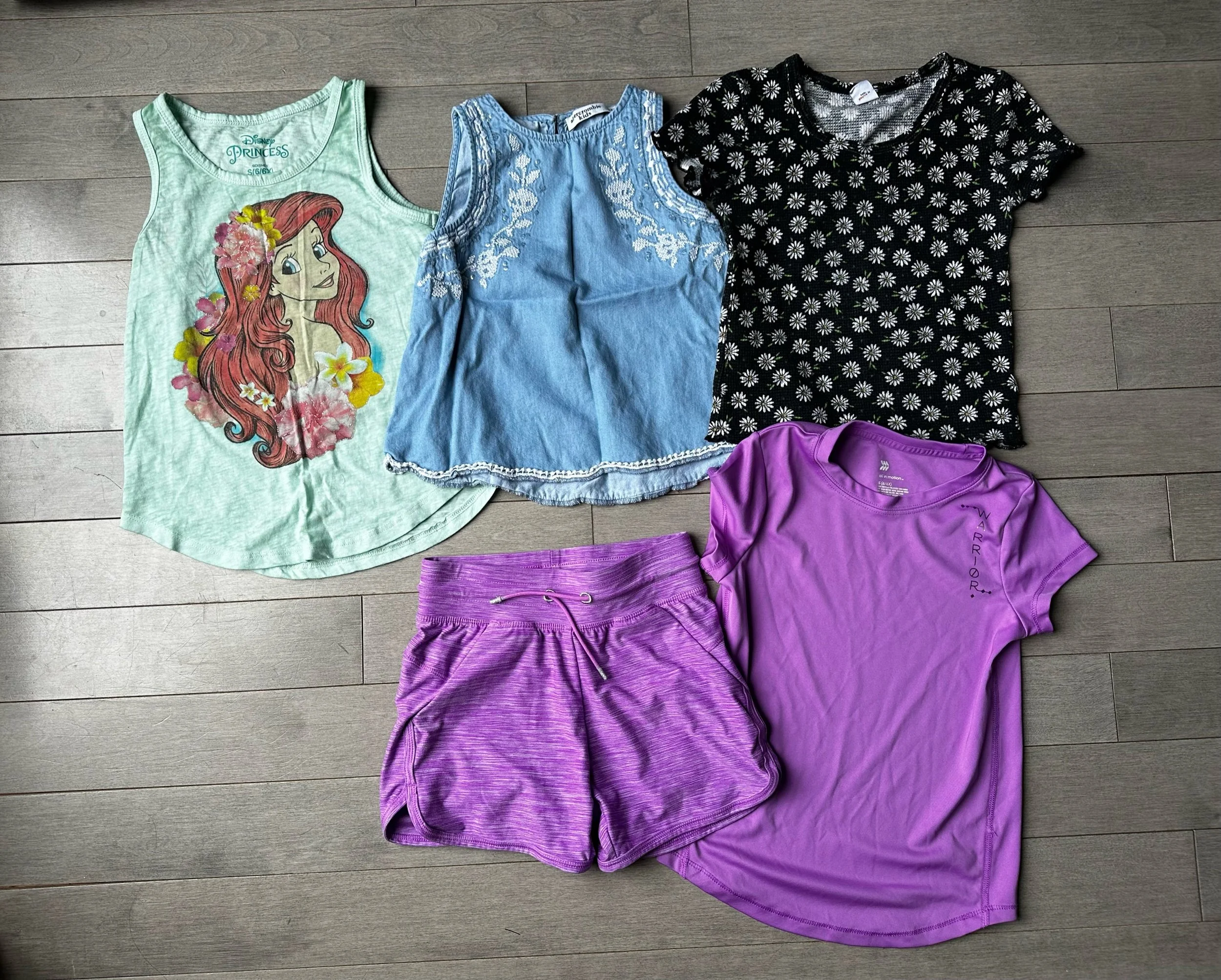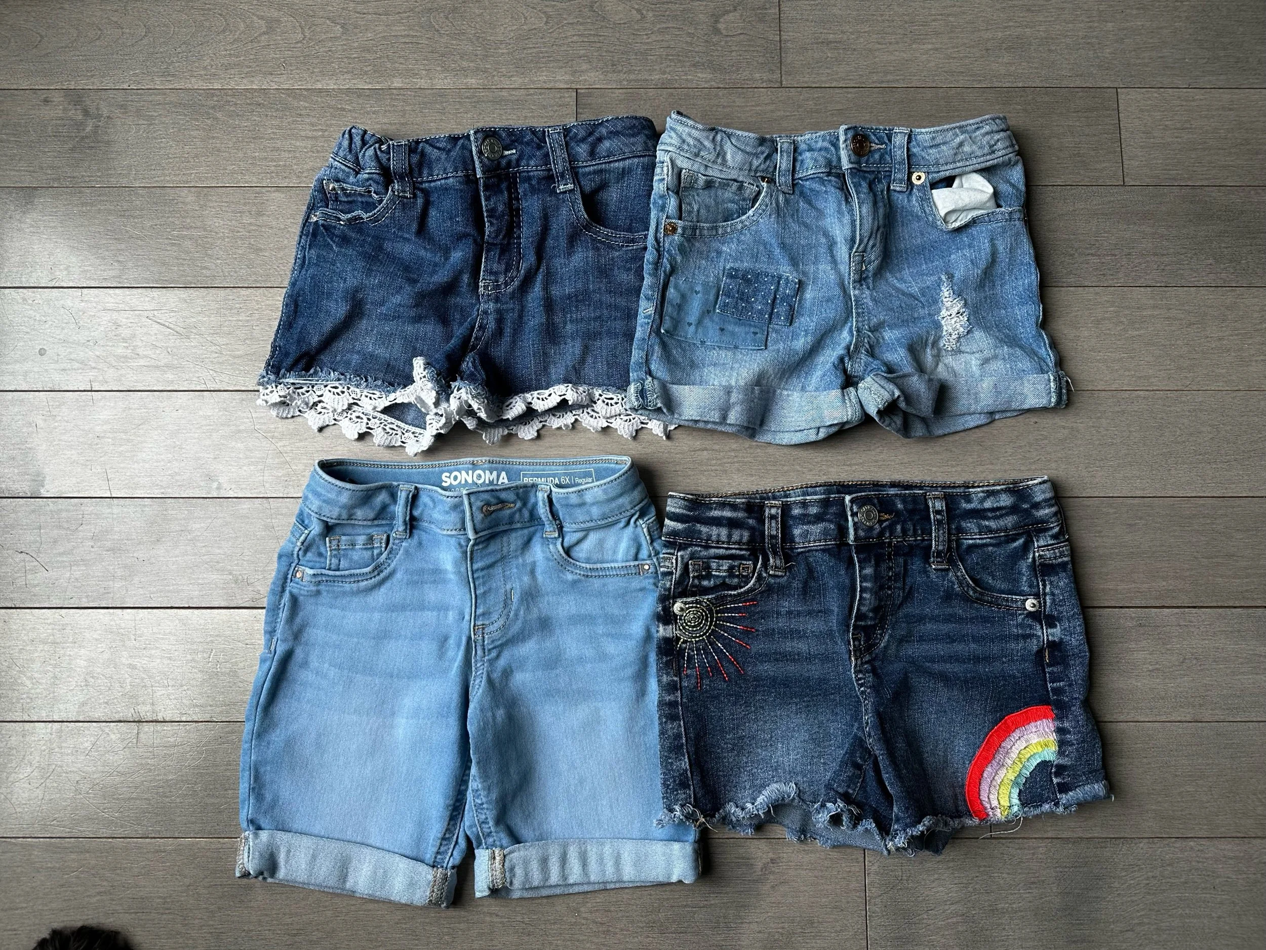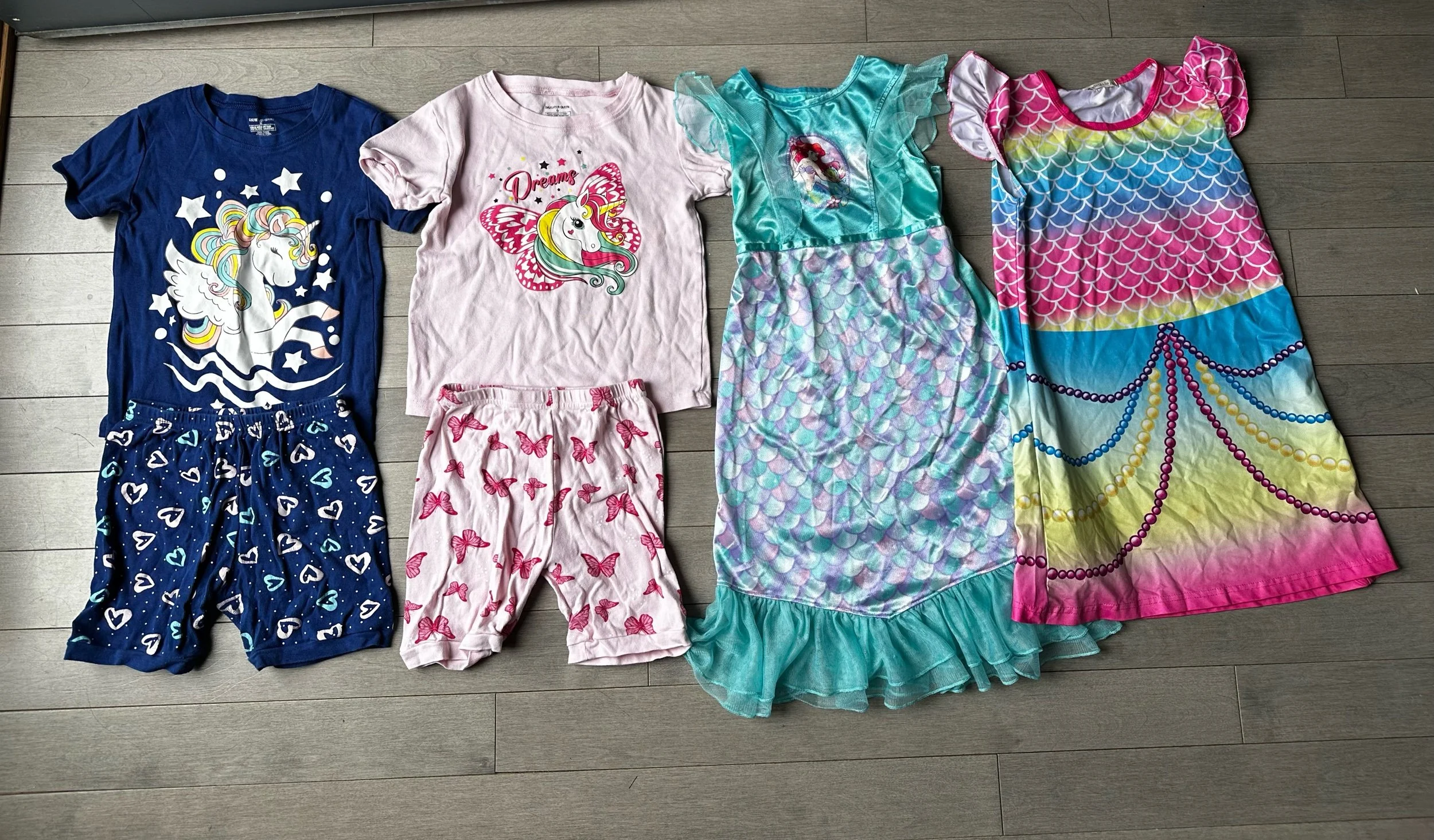 This toddler girls clothes bundle includes a variety of outfits and sets in size 6, featuring a mix of brands and multicolor options. The bundle includes jean shorts, pajamas, and shirts, all designed for little girls in a vibrant and playful style. Perfect for a typical toddler's wardrobe, this lot offers a range of pieces to keep your little one stylish and comfortable throughout the day.